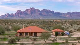 Spectacular 40-acre ranch offering privacy, breathtaking mountain views, and true Arizona living! This stunning 4-bedroom, 3-bath, 2,336 sq ft home features 2x6 walls, a formal dining room, a cozy fireplace, and an additional flex space perfect for an office or sitting room. Expansive windows frame the incredible Tonopah scenery, with saguaros as your only neighbors. Beautiful flooring flows throughout the home, complemented by abundant storage, real wood cabinetry with pull-outs, a charming office nook, and built-in Craftsman-style bookshelves surrounding the living room TV area. Enjoy covered patios on both the front and back of the home, a large 2-car garage, and a massive detached workshop that can also serve as additional garage space. Ideal for horses, hiking, and wide-open living.