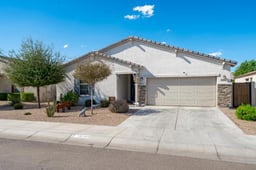 Experience comfort and style in this beautifully designed home with ideal north south exposure. The kitchen features granite countertops, stainless steel appliances, and a breakfast bar perfect for casual dining. A split floorplan enhances privacy in the primary suite, while all bedrooms offer walk in closets for exceptional storage. Enjoy energy efficiency with fully paid solar and relax outdoors on the spacious covered patio, creating the perfect space for entertaining or unwinding.