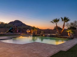 Custom-built 4 bedroom, 3 bathroom home offering 3,072 sq ft of living space on a full 1-acre lot, located in a custom home neighborhood. This residence features upgraded interior finishes including stone accent walls, exposed wood ceiling beams, granite countertops, upgraded flooring throughout, and remodeled bathrooms with floor-to-ceiling natural stone. The exterior is designed for both function and enjoyment, featuring a landscaped yard with full irrigation, custom inground pool and hot tub, artificial turf, a 36’ covered carport, and two 200 sq ft detached sheds built to match the home. Additional outdoor amenities include a sandbox play area and side dog run. Enjoy a peaceful setting away from city congestion while remaining conveniently close to grocery stores, gas stations, schools, churches, and other everyday amenities.