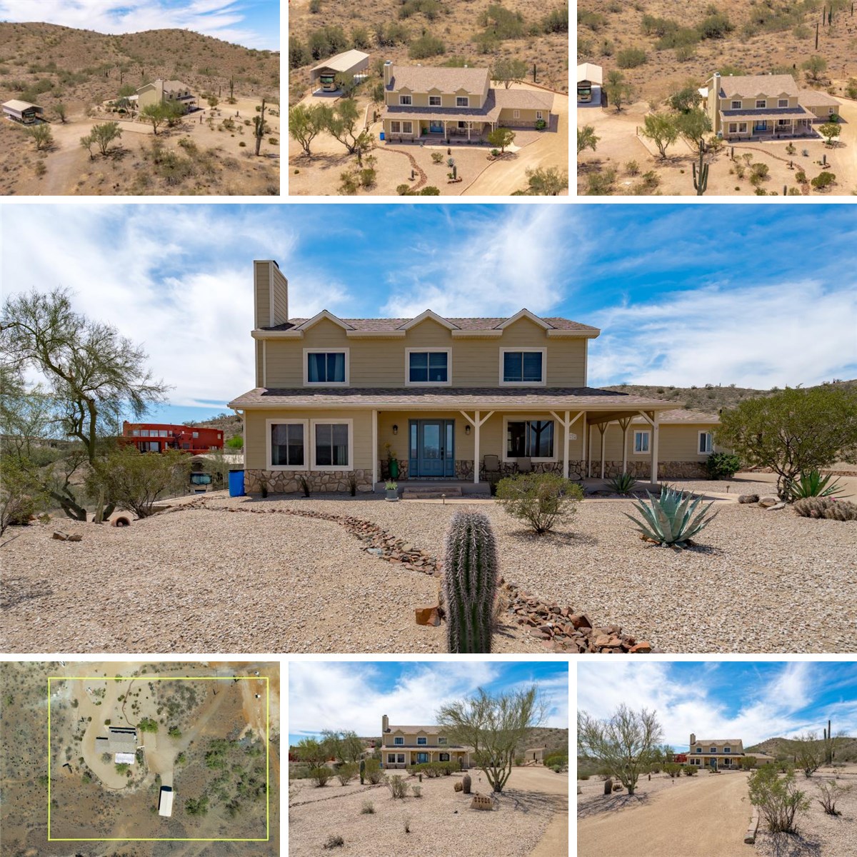 Welcome to your hidden gem in the Highlands of Desert Hills! This private retreat is perfectly nestled on a secluded lane just off 7th Street, offering breathtaking mountain views and endless possibilities. Step inside this meticulously maintained home and discover a warm, inviting space with beautifully updated flooring, a modern kitchen, and remodeled bathrooms. The expansive great room flows seamlessly into a bright and open kitchen, perfect for family gatherings and entertaining guests. Upstairs, you'll find three generously sized bedrooms, each boasting stunning mountain views from every window. The master suite offers a peaceful escape with its updated bathroom and serene atmosphere. Outside, the spacious backyard is your personal oasis, complete with a pergola-covered patio for relaxing afternoons, a manicured yard, and a guest RV spot with full hookups - perfect for visitors! Plus, a large covered carport provides plenty of storage for your RV or boat.