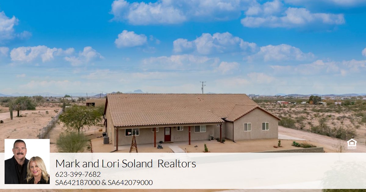 Situated just off a paved road, this exceptional Tonopah home truly checks every box. Featuring a 3-car garage plus a large exterior 3 car slab for extra parking, this property offers both convenience and functionality. Enjoy an inviting front porch made for unwinding with breathtaking 360° views. The backyard is completely fenced and includes a wonderful covered back porch, perfect for relaxing or entertaining. Inside you'll find beautiful flooring throughout, granite countertops, and a butler's pantry. The home offers three spacious bedrooms, including a primary suite with a walk-in tile shower and separate soaking tub. Multiple rooms, including the primary bedroom, secondary bedroom, and living room, feature direct backyard access ideal for fresh air. There is a wonderful "man-cave/bar" off of kitchen which is perfection for entertaining! Next to the bar is an additional room for extra refrigerator /small appliances for storing. A well-placed half bath off the kitchen and living area adds extra convenience for guests. This unique home offers comfort, style, and thoughtful design in a prime Tonopah location, all while being close to Winters' Well Elementary School. A rare find that truly has it all.