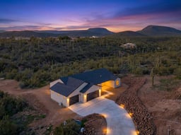 Brand-new custom build on 1.6 acres at the base of Apache Peak. This 4-bedroom, 3.5-bath, 2,329 sq ft home is designed with flexibility and efficiency in mind, featuring two primary suites-ideal for multi-generational living or guests-and spray foam insulation for year-round comfort. The open-concept floor plan showcases quartz countertops, slim shaker cabinetry, and contemporary, quality-selected finishes throughout. The 3-car garage is a standout feature-heated, cooled, and fully insulated, with one extra-deep bay and a pull-through door for toys, trailers, or a workshop. Enjoy desert living with stunning mountain views, surrounded by mature saguaro and access to nearby State Land for the outdoor enthusiast, all offered in a brand-new build designed with comfort and quality in mind.